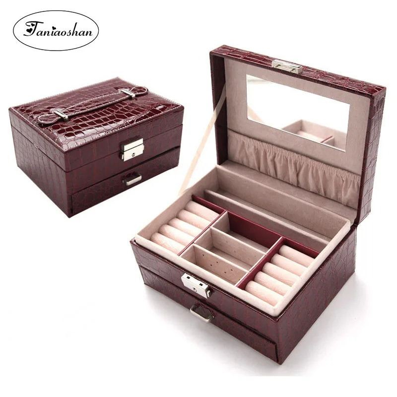 European-style jewelry storage box Fashion Pu leather wholesale jewelry boxes two layers jewelry display
