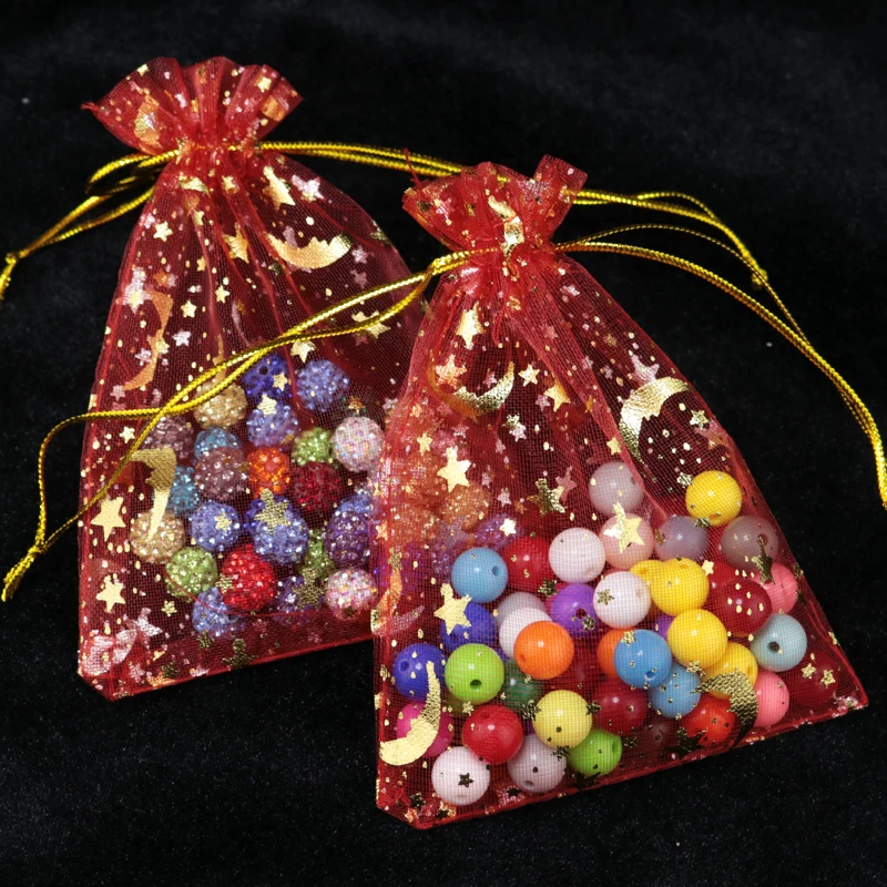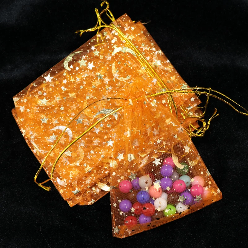Discount Wholesale 100pcs/lot Mixed Color Small Organza Bags 7x9cm moon stars Jewelry Bracelet Candy Gifts Cosemetics Packaging Bags
