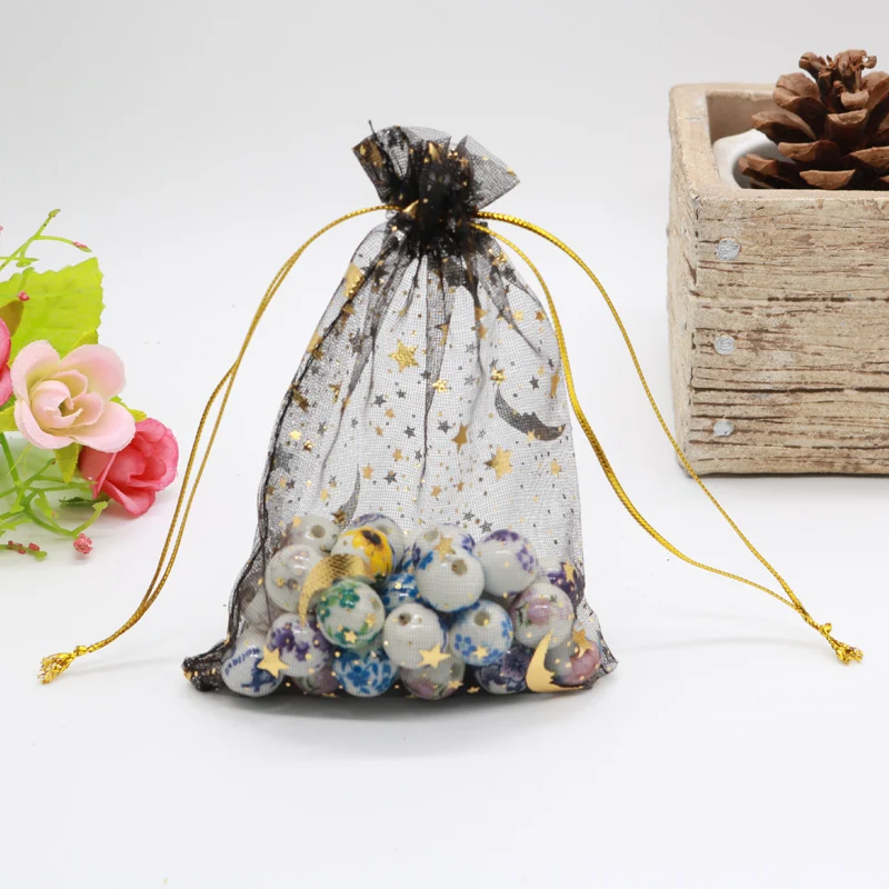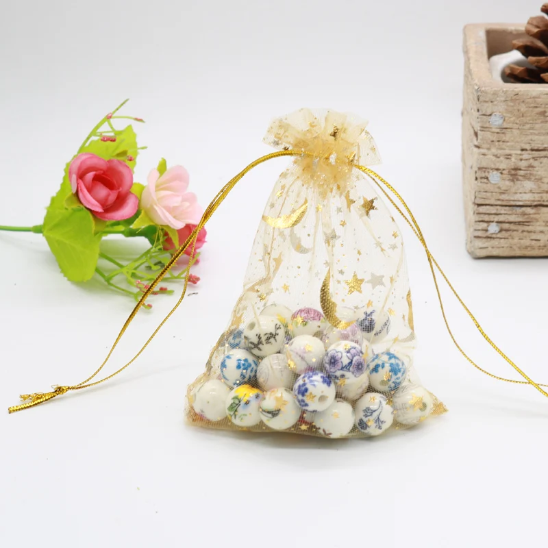 Wholesale 100pcs/lot Mixed Color Small Organza Bags 7x9cm moon stars Jewelry Bracelet Candy Gifts Cosemetics Packaging Bags