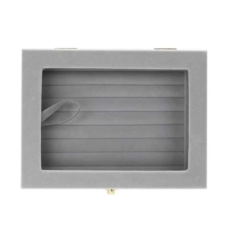 Hot 2019 New 8 Booths Velvet Gray Carrying Case with Glass Cover Jewelry Ring Display Box Tray Holder Storage Box Organizer