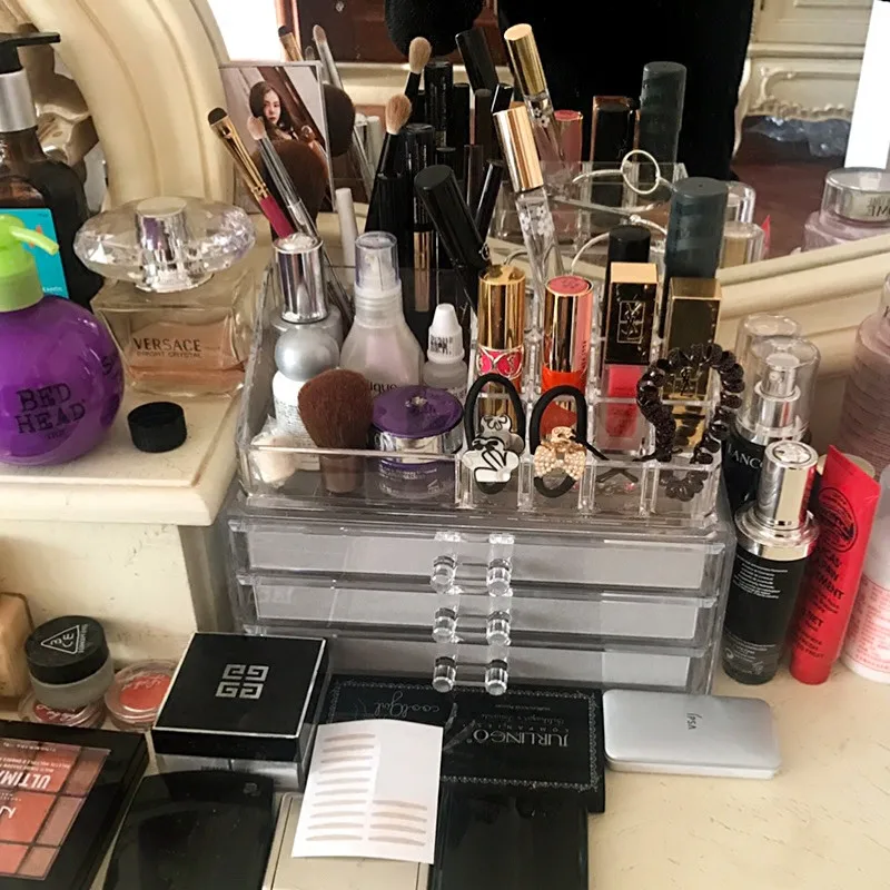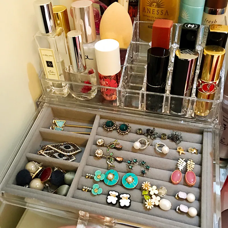 Limited Offer Acrylic Multi-layer Brush Kit Eye Cosmetic Beauty Makeup Storage Box with Velvet 3 trays cosmetics or toiletries Storage cases