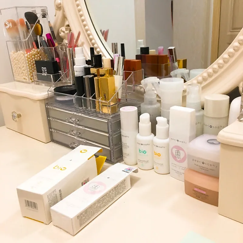 Acrylic Multi-layer Brush Kit Eye Cosmetic Beauty Makeup Storage Box with Velvet 3 trays cosmetics or toiletries Storage cases