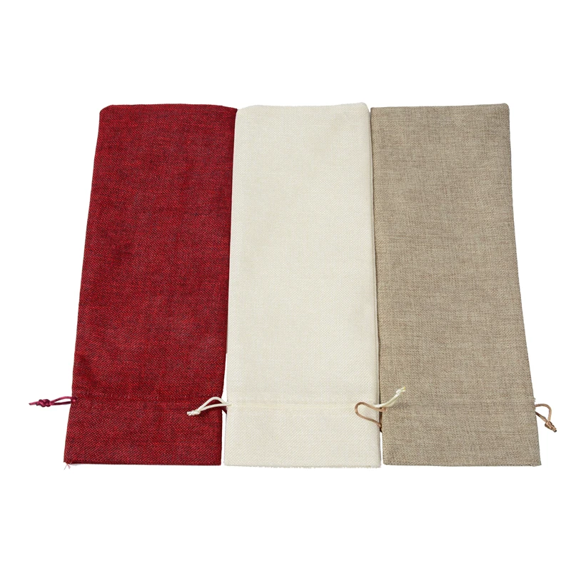 100pcs Customized Handmade Jute Wine Bottle Covers 5.9"x15.35" Burlap Drawstring Linen Pouch Wedding Christmas Gift Bags