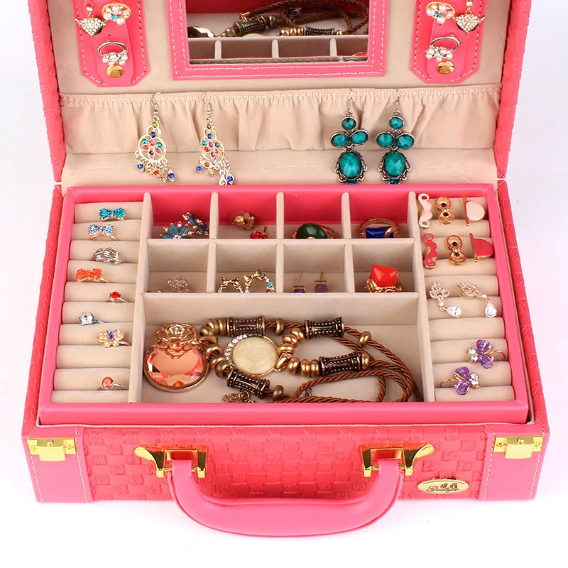 17% OFF!! 2014 High-Quality jewelry box fashion princess dressing leather jewelry box with lock European large capacity double jewelry box only $30.29