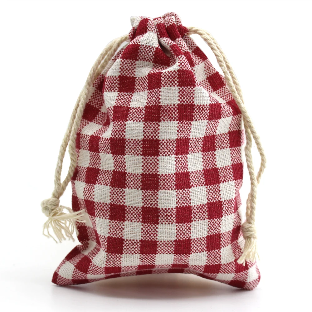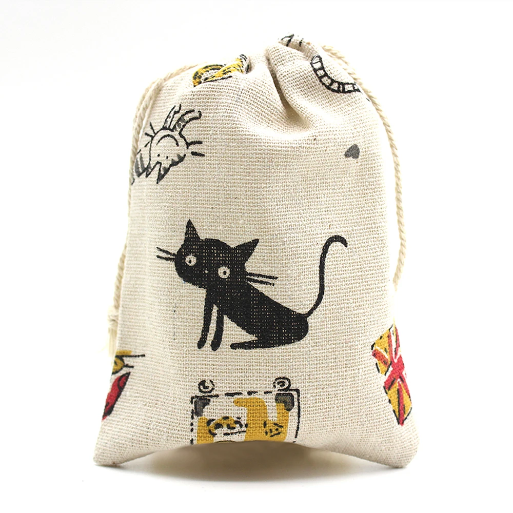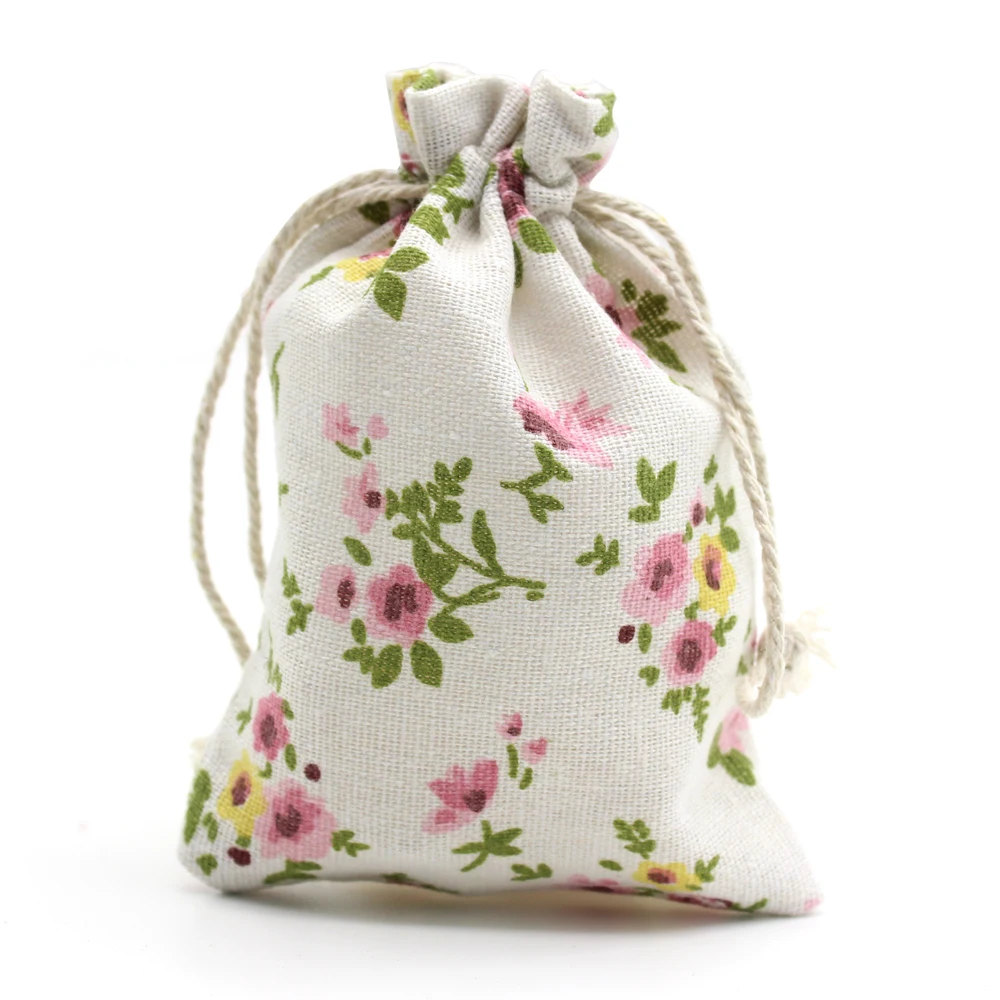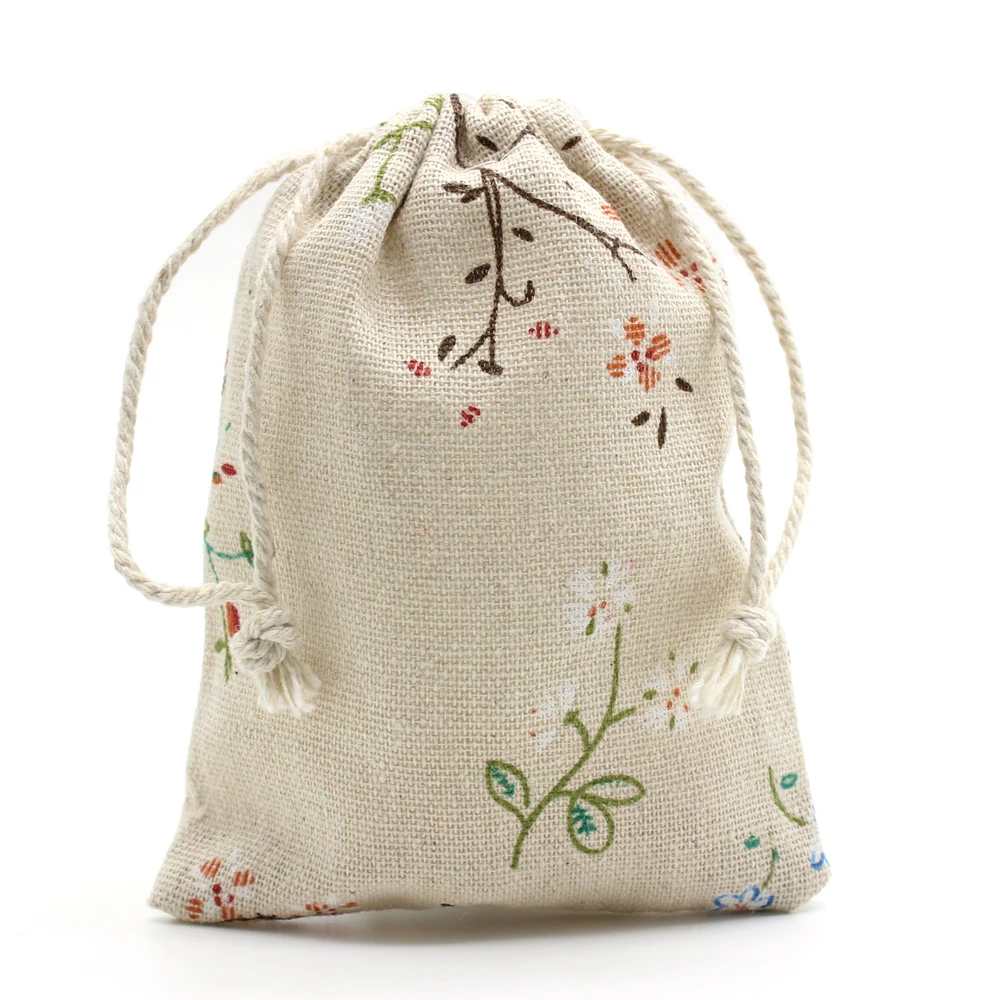 HOCOLE 5Pcs/Lot Flower Cherry Fox Print Linen Drawstring Pouch Bag Handmade Gift Christmas Candy Jewelry Cosmetic Bags 10*14cm
