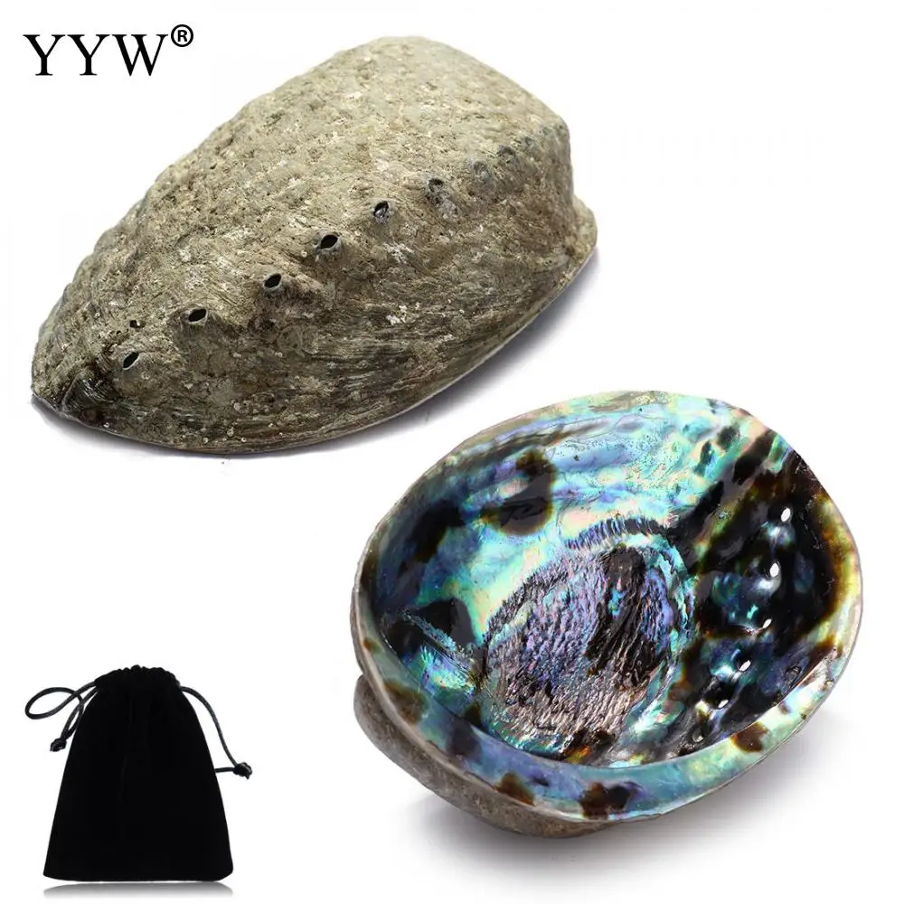 35% OFF!! 132x95x36mm Large Abalone Shell(4-6") Rainbow Multicolor Oval Smudge Bowl With Velvet Pouch Hole Shell Jewelry Holder For Gift