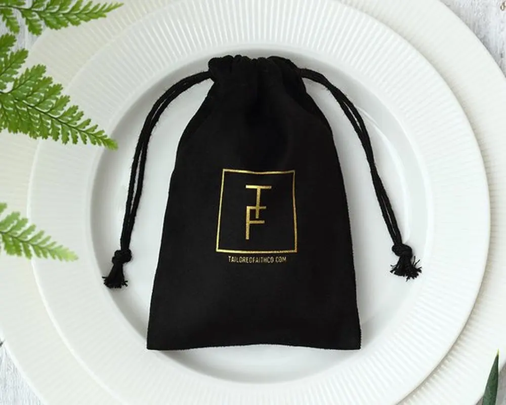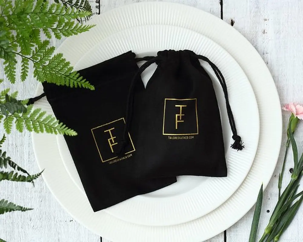 100 Black Flannel Jewellry Gift Bags Personalized Logo Jewelry Packaging Chic Drawstring Pouches for Wedding Party Decoration