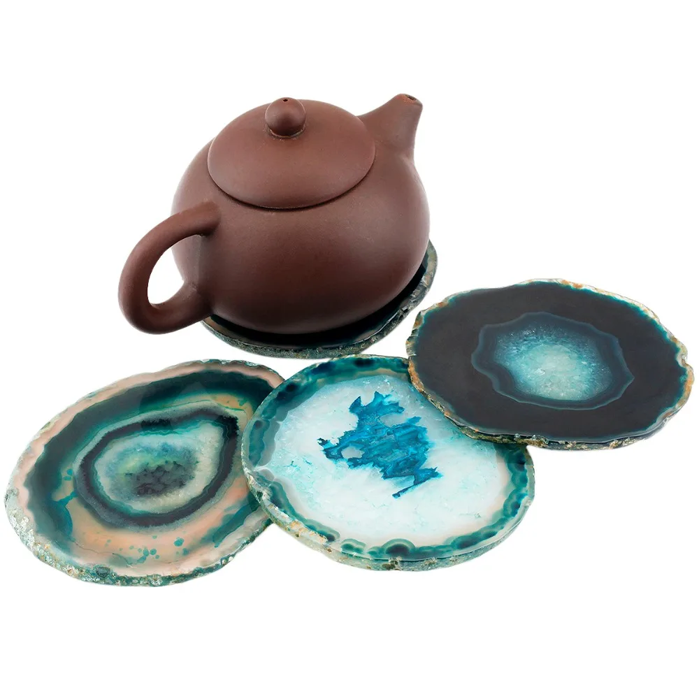 Best Seller SUNYIK 1Pc Agate Slices Geode Cup Mat,Crystal Gem Stone Beverage Coasters,Random Home Decoration 3-3.9''