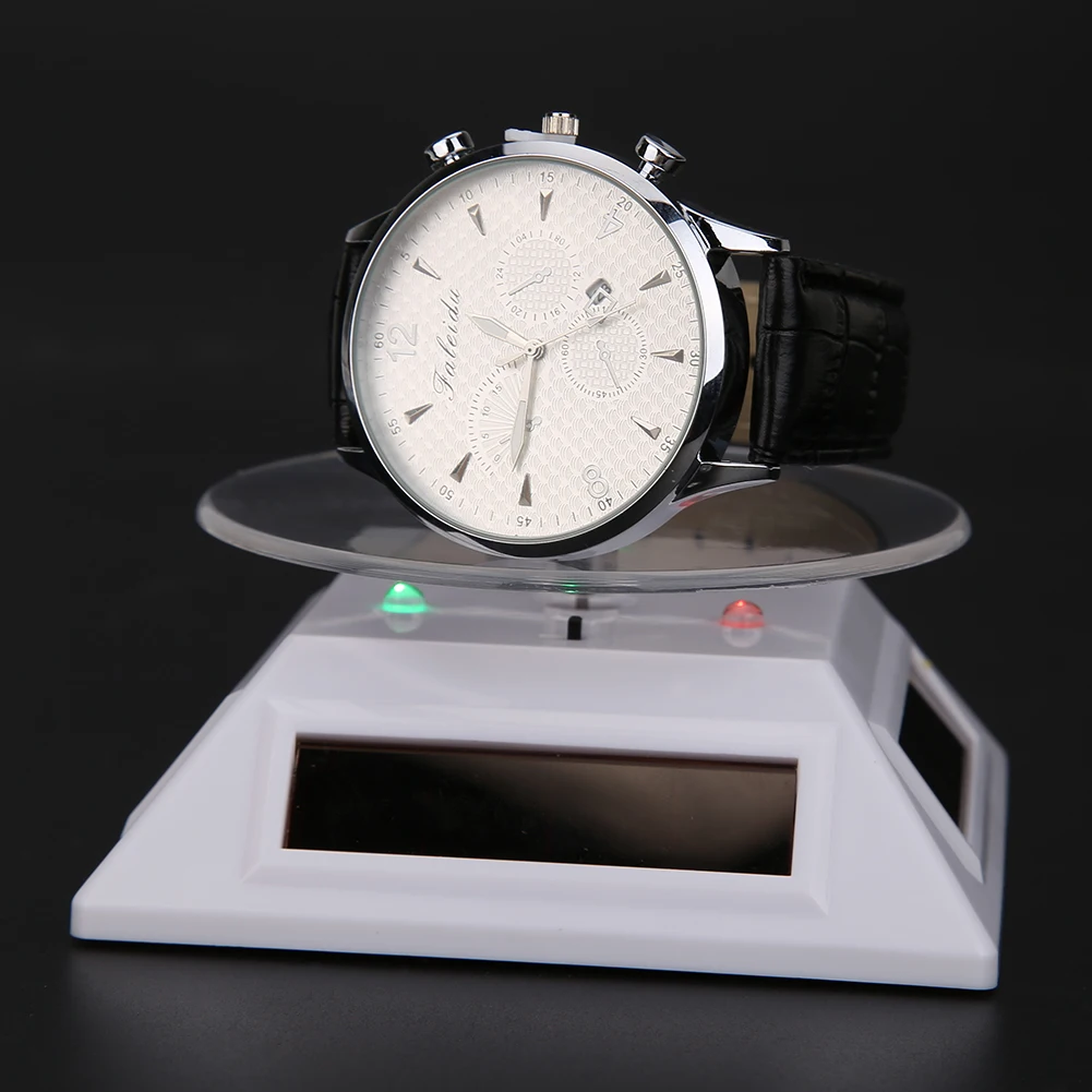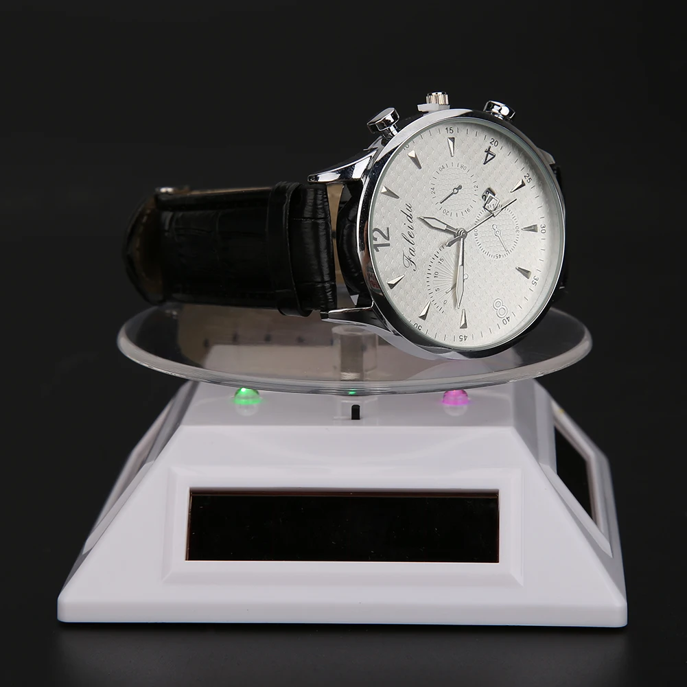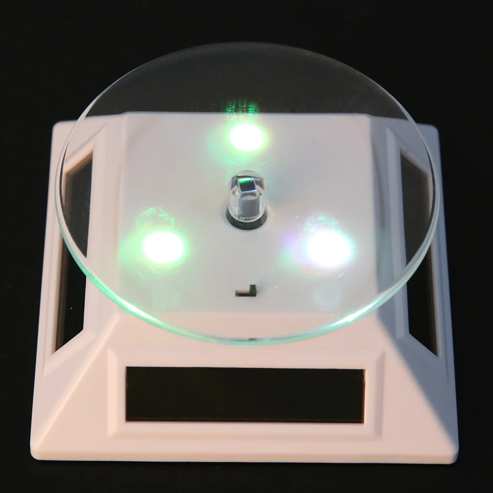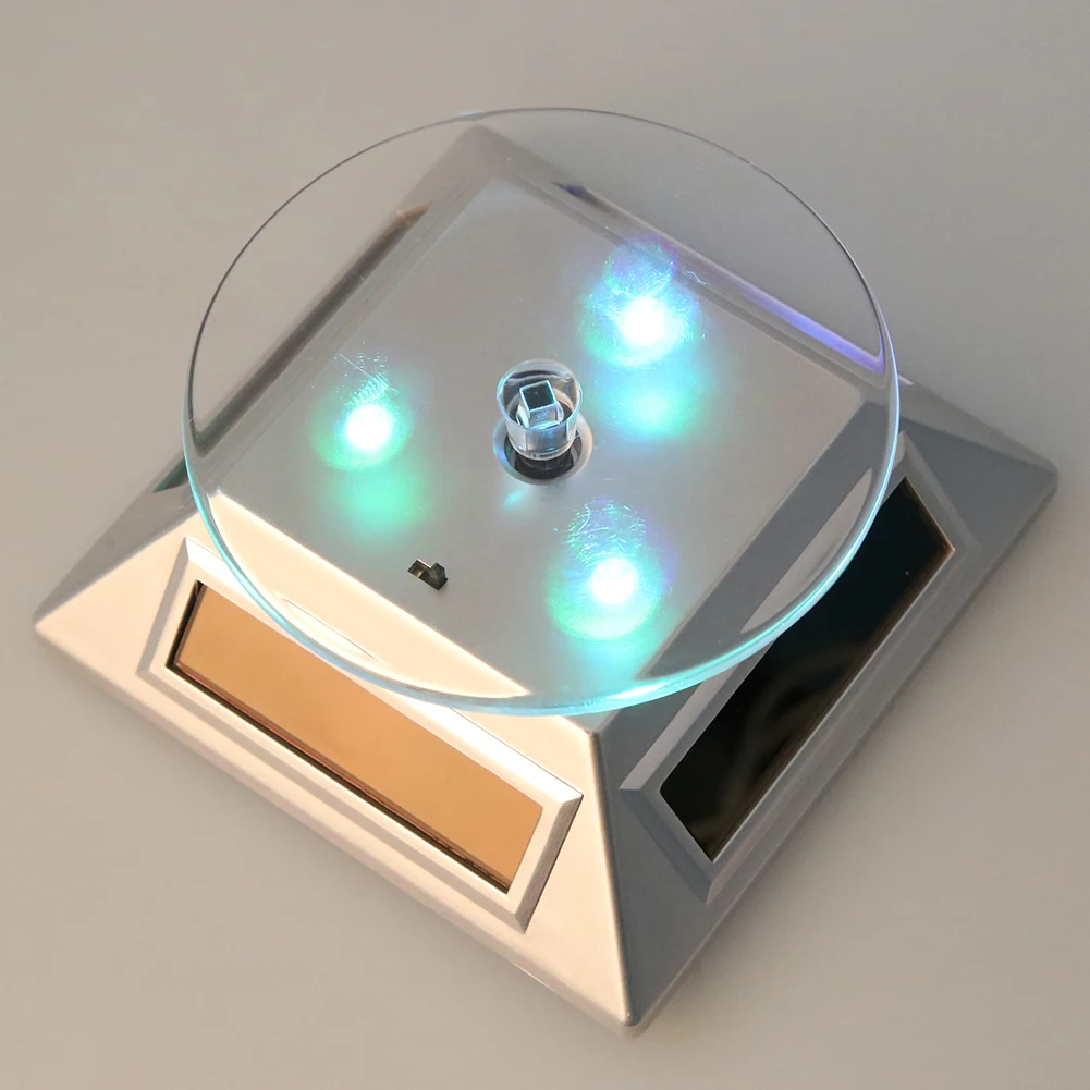 New Fashion 3LED Color Lights Solar Showcase 360 Turntable Rotating Jewelry Watch Ring Display Stand Creative Jewelry Display