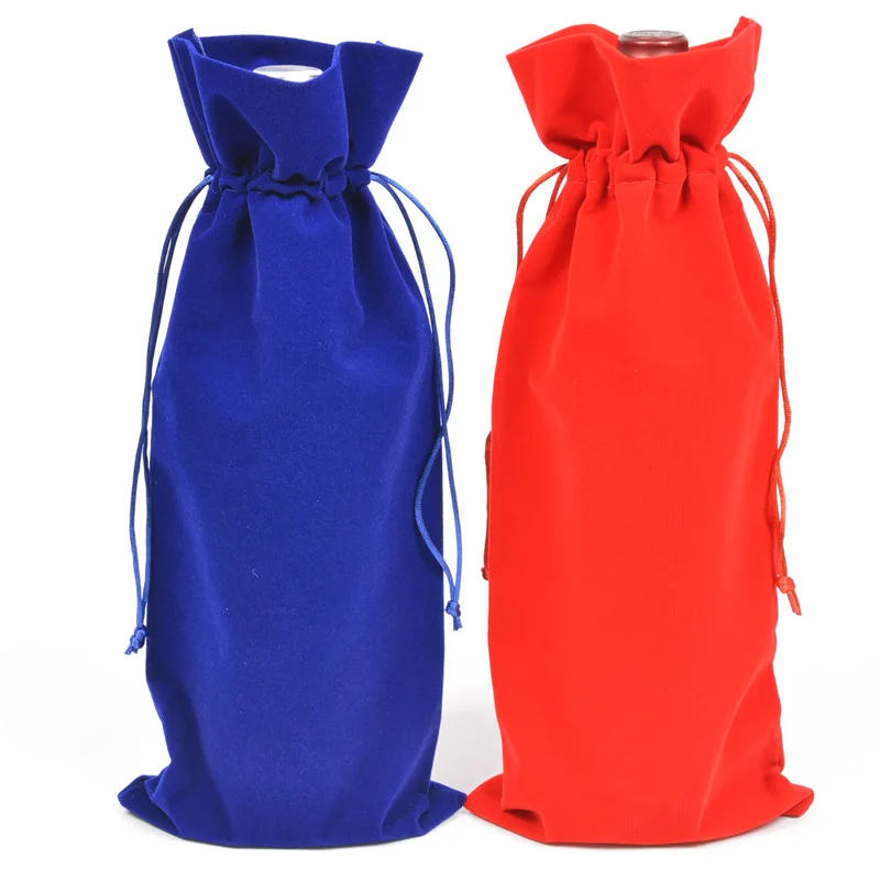 10pcs/lot Velvet Wine Champagne Bottle Cover Bags Party Favors Jewelry Packaging&Display Drawstring Gifts Bag 16x38cm Pouches