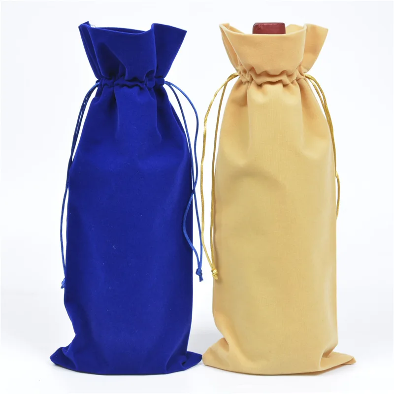 Discount 10pcs/lot Velvet Wine Champagne Bottle Cover Bags Party Favors Jewelry Packaging&Display Drawstring Gifts Bag 16x38cm Pouches