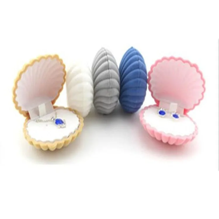 Shell Shape Lovely Velvet Wedding Engagement Ring Box for Earrings Necklace Bracelet Jewelry Display Gift Box Holder 1 Piece