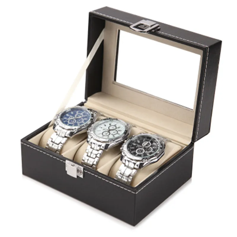 OFF!! 3 Size Black Leather Watch Bracelet Storage Box Transparent Glass Visible Jewelry Casket Watch Packaging and Finishing Case