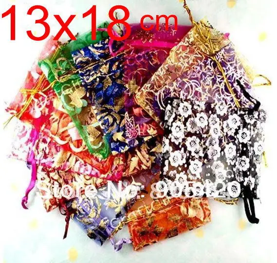 OMH wholesale 50pcs 13x18cm 10color mix chinese Christmas Wedding voile gift bag Organza Bags Jewlery packing Gift Pouches BZ08