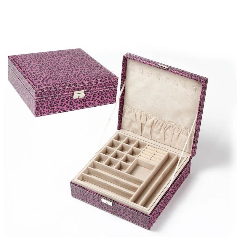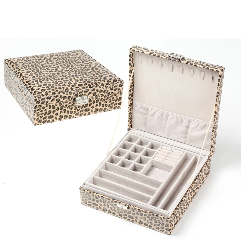 new fashion Perfect practical very large capacity leather jewelry box with two layers leopard pattern jewelry box jewel case