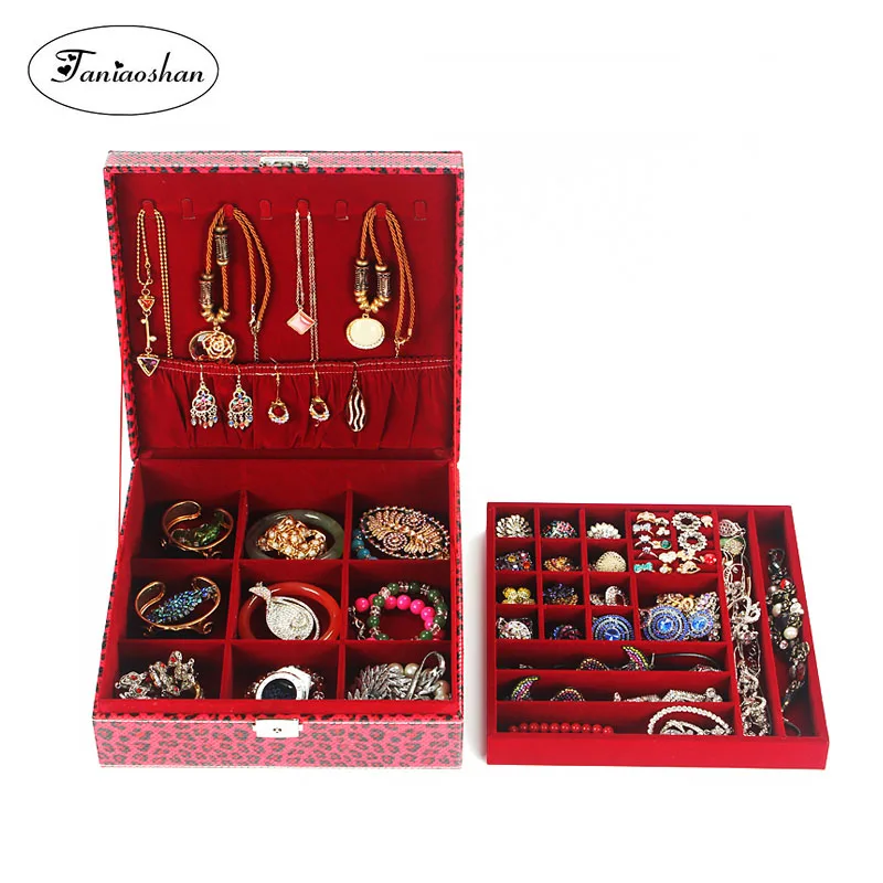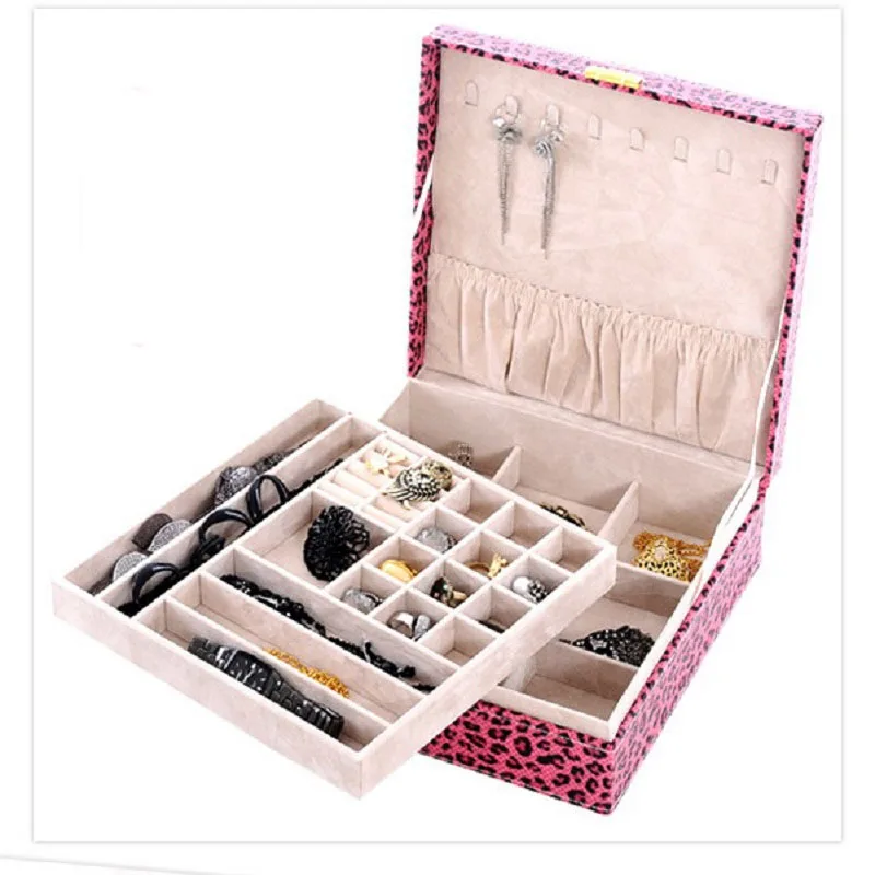 31% OFF!! new fashion Perfect practical very large capacity leather jewelry box with two layers leopard pattern jewelry box jewel case