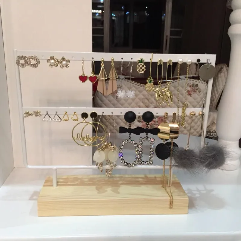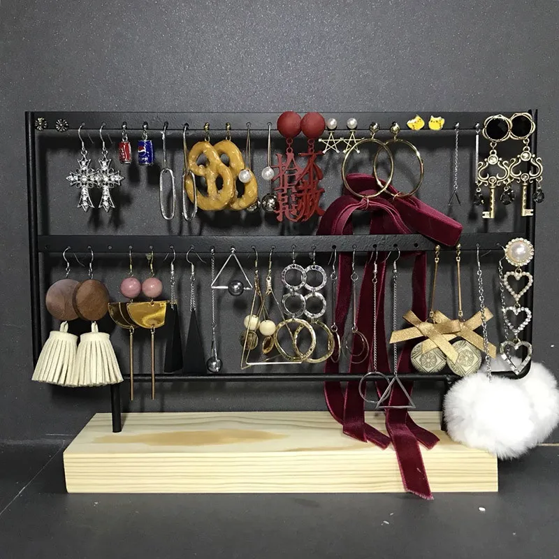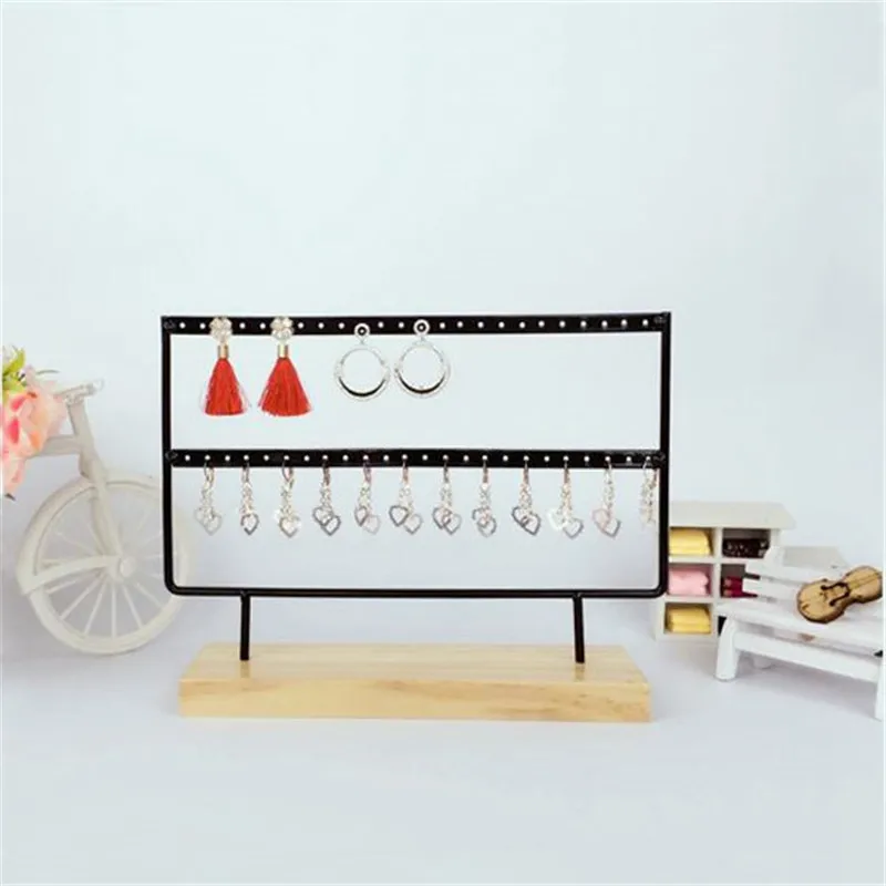 48 Holes Jewelry Organizer Stand Black and White color Iron with Wooden craft Earring Holder Fashion Earrings Display Rack
