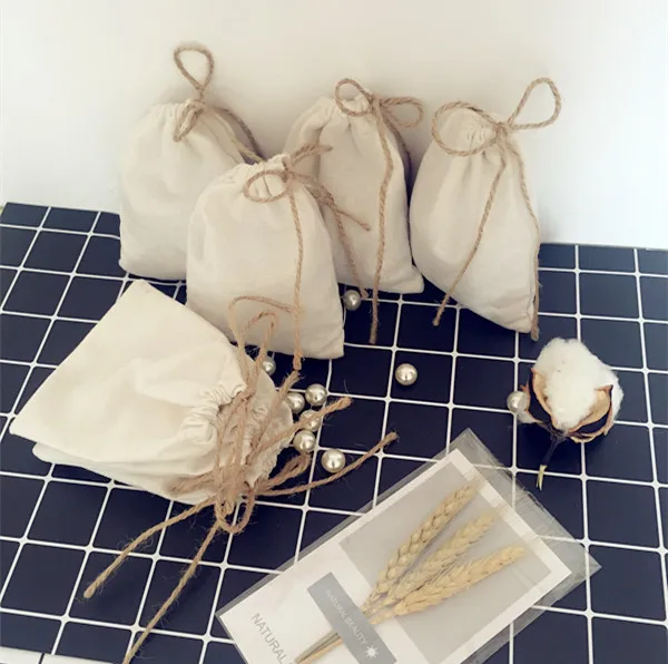 Cotton Burlap Drawstring Bag 8x10cm 9x12cm 10x15cm 13x17cm pack of 100 Makup Perfum Jewelry Gift Packaging Pouch