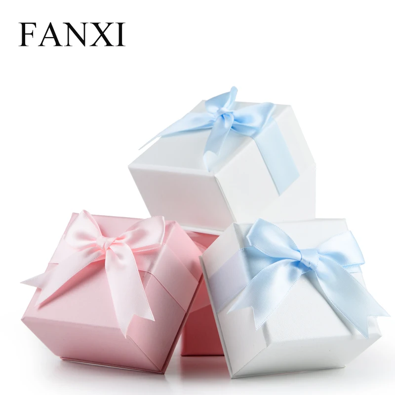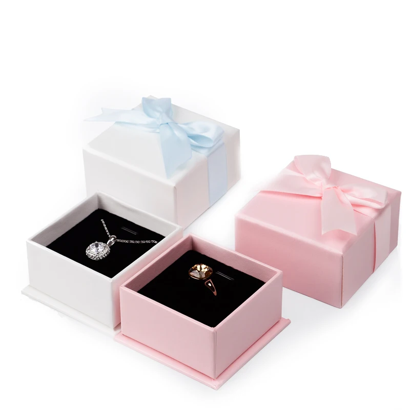6 PCS/LOT Jewelry Gift Paper Box with Bow-knot Wedding Party Ring Pendant Earrings Storage Box Jewelry Organizer Showcase