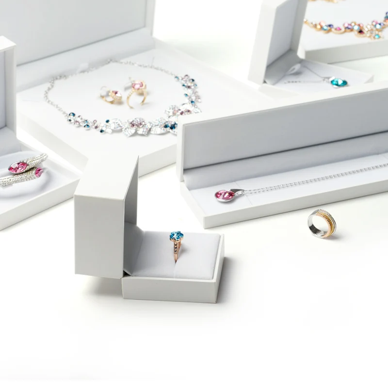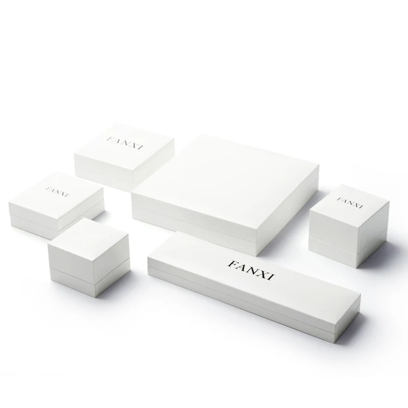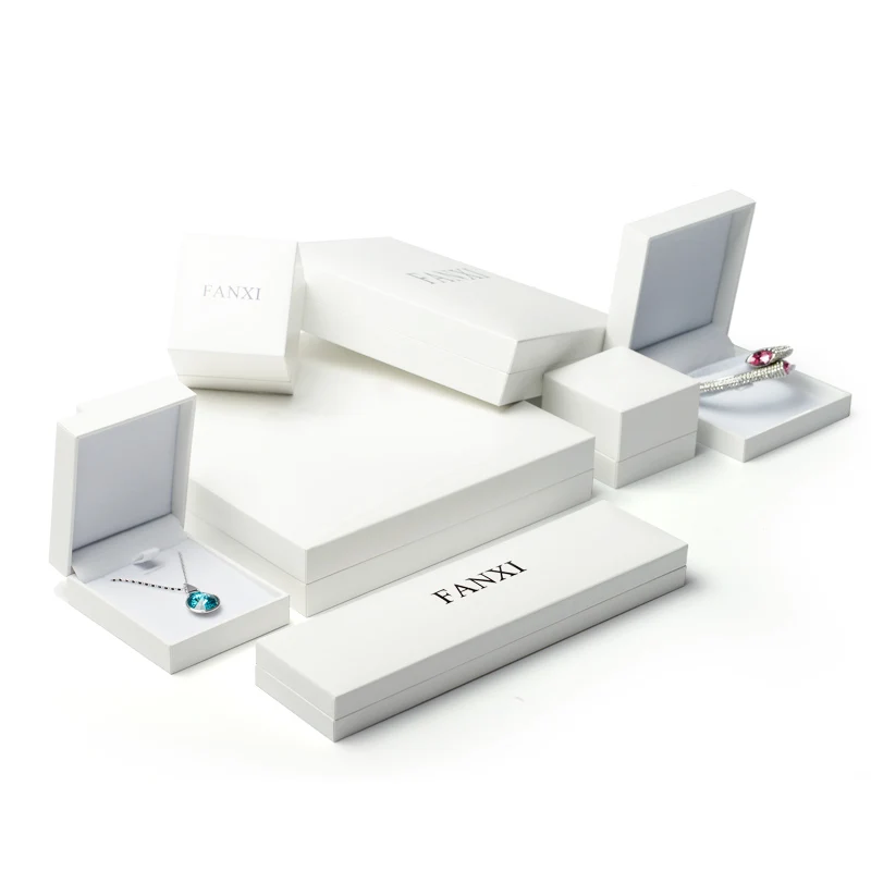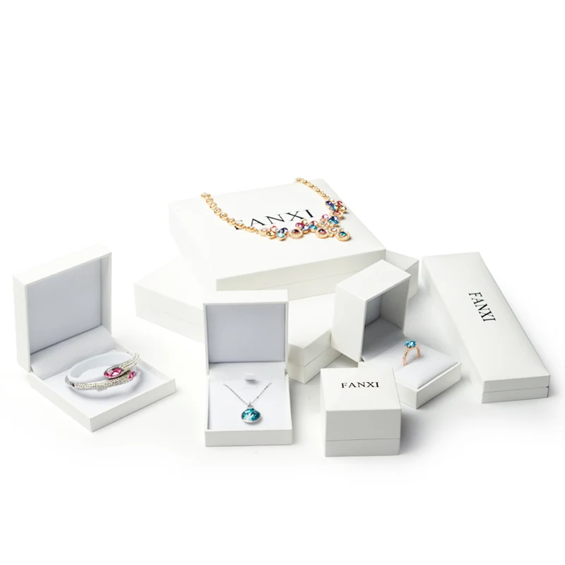 FANXI White Leatherette Paper Jewelry Gift Box Velvet Insert Ring Necklace Pendant Bracelet Chain Packaging Box Showcase