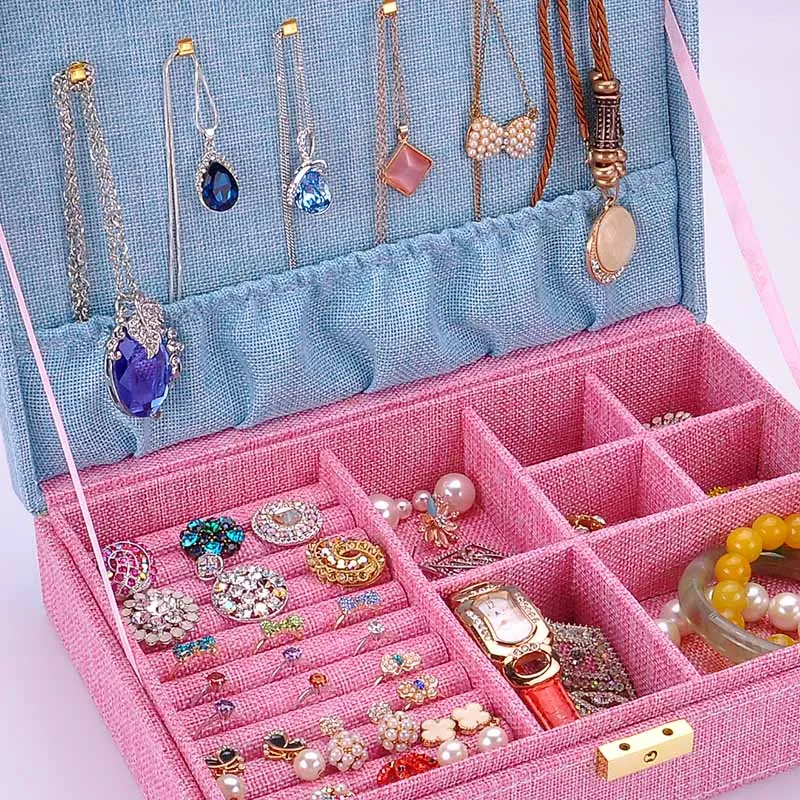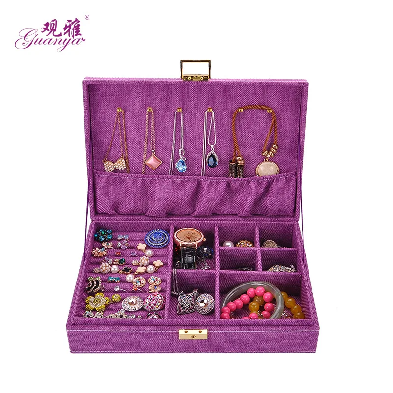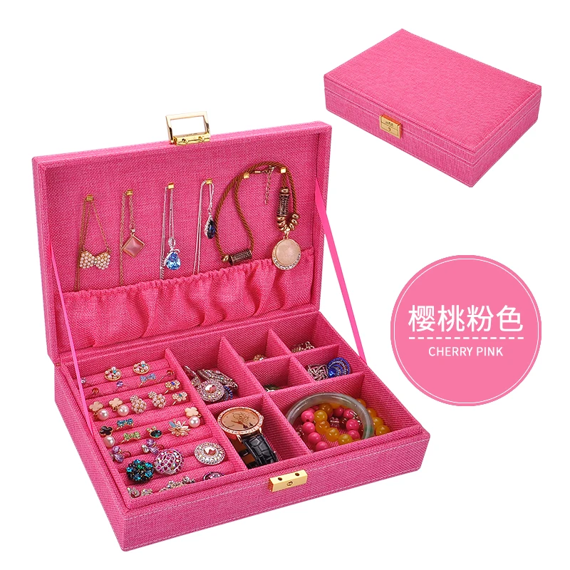 New Large space Creative High quality Hemp Jewelry Box ,Ring Earrings Necklack Storage Container Casket for Jewelry Trave Case