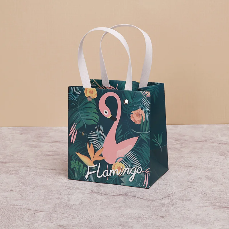 5% OFF!! 5pcs Flamingo Unicorn Kraft Paper Gift Bag Wedding Decoration Clothes Paper Bag with Handle Party Favors Candy Bag Gift Package