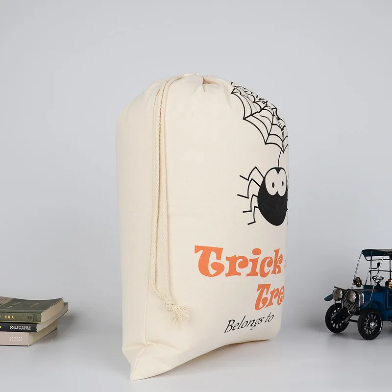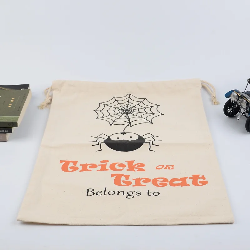 Halloween Cotton Canvas Drawstring Gift Bag Child Candy Jewelry Gift Pouch Pumpkin Spider Bag of Tricks 1PC