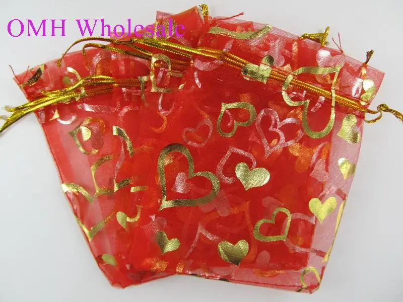 88% OFF!! OMH wholesale 50pc 11x16cm Heart rose heart Christmas Wedding voile gift bag Organza Bags Jewlery packing Gift Pouch BZ08 only $4.60
