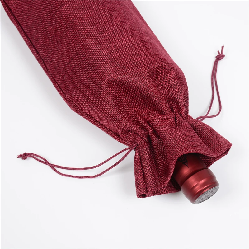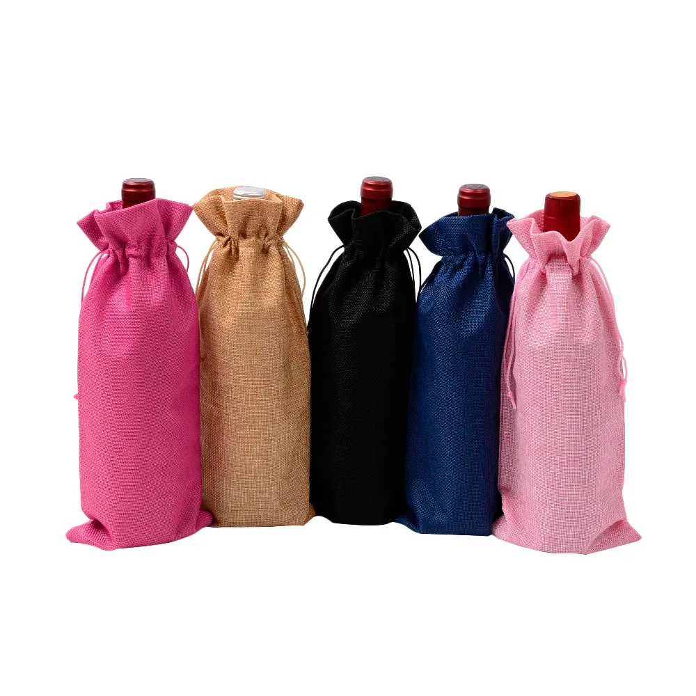 Best Seller 100pcs Jute Wine Bottle Covers Bags Burlap Line Drawstring Red Wine Pouch Christmas Party Wedding Gift Bag 5.91"x13.78" only $