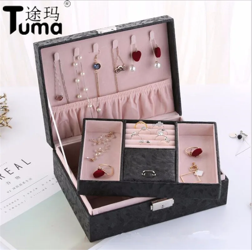 Best Seller 2015 The new elegant European-style leather jewelry box storage box large jewelry box with lock upscale jewelry casket