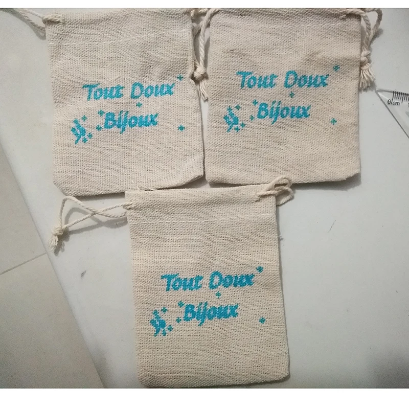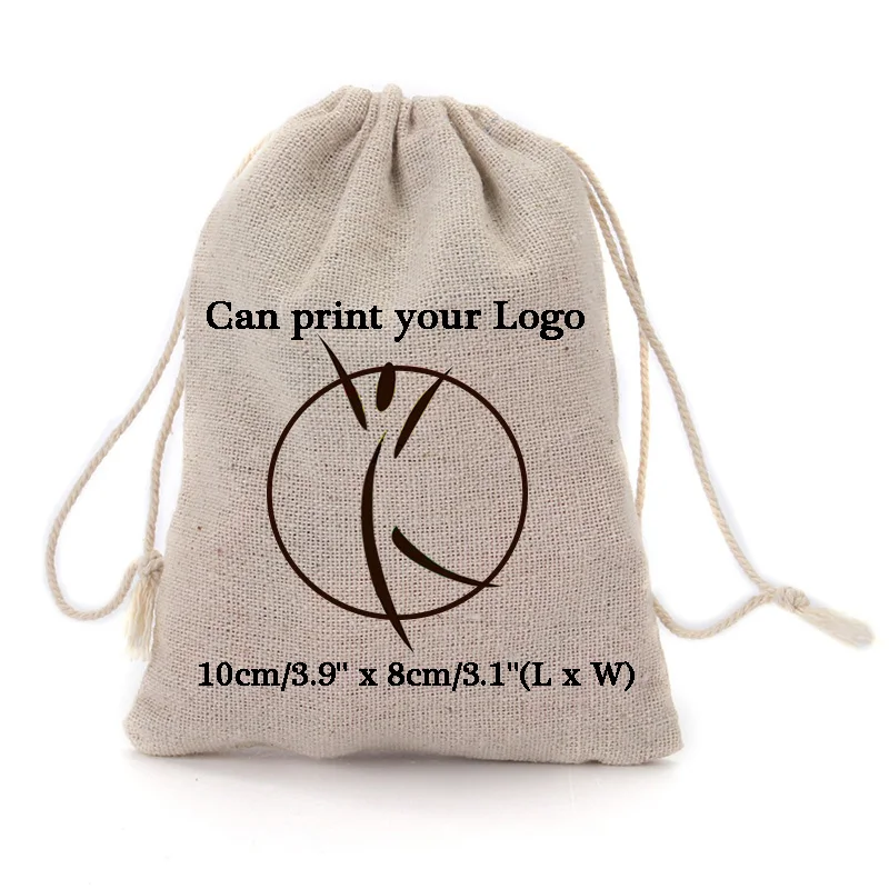Personalized logo 8x10cm (3"x4") Cotton Linen Drawstring Gift Bags can print company logo or store name Customized wedding name