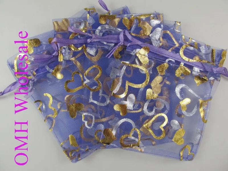 50pcs 12x10cm Love heart flower 20color chinese Christmas / Wedding voile gift bag Organza Bags Jewlery packing Gift Pouch BZ03