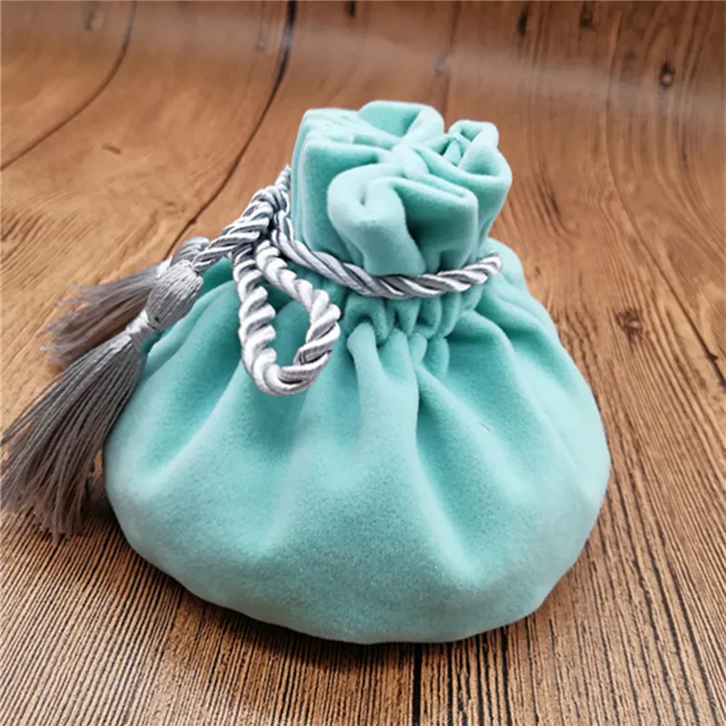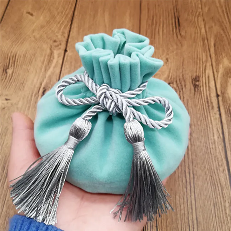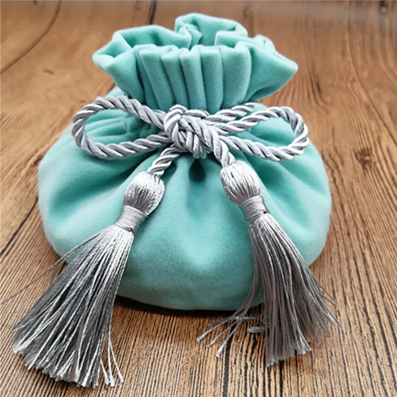 6pcs/lot 12*17mm Velvet Gree color Jewellery Bags With Tassel Wedding candy Pouch large wedding gift bag Free shipping