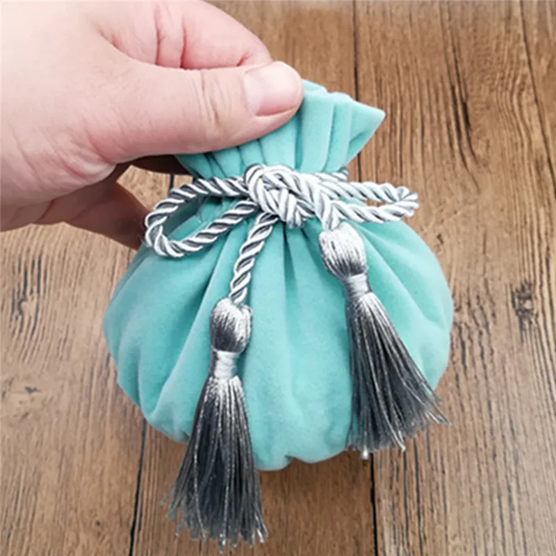 Buying Guide 6pcs/lot 12*17mm Velvet Gree color Jewellery Bags With Tassel Wedding candy Pouch large wedding gift bag Free shipping