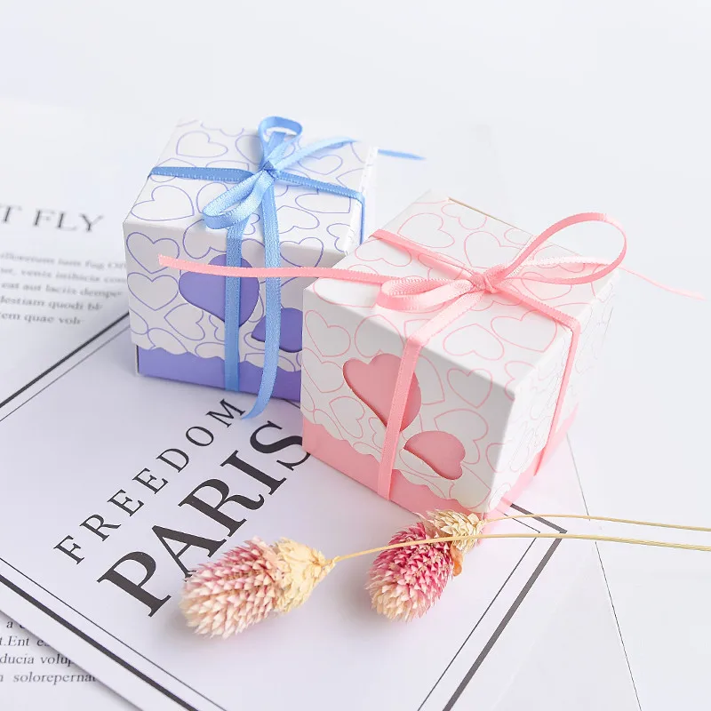 50pcs/group Colorful Snack Gift Box Candy Cases With Ribbon Christmas Boxes And Packaging christmas Boxes Cookies