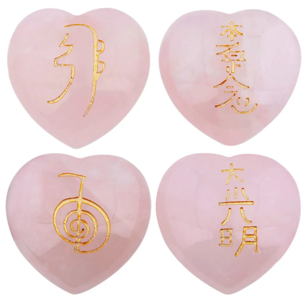 Aliexpress has TUMBEELLUWA 1Set (4Pc) Natural Rose Quartz Puff Heart Engraved Stone,Palm Usui Stone Healing Crystal Chakra Reiki Symbols for just $9.79 shipped.