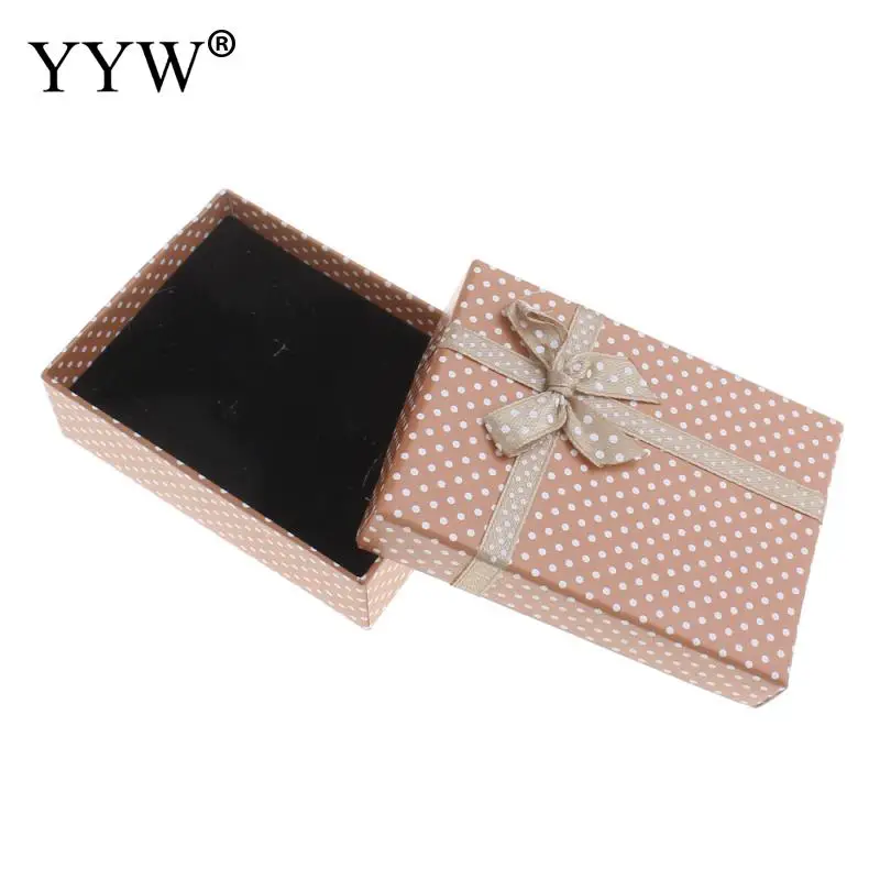 Wholesale 1pc New Styel Rectangle Jewelry Box Paper Couple Ring Box Earring Necklace Gift Boxes With Round Spot Pattern Boite A Bijoux