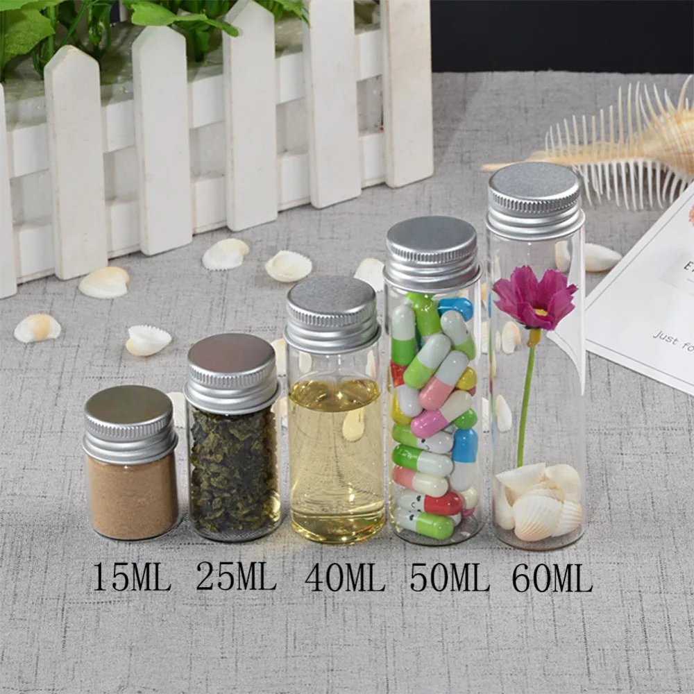 15ml 25ml 40ml 50ml 60ml Glass Bottles Jewelry Packing Cute Bottles Aluminium Lid Empty Ornament Bottles Jars Containers 12pcs