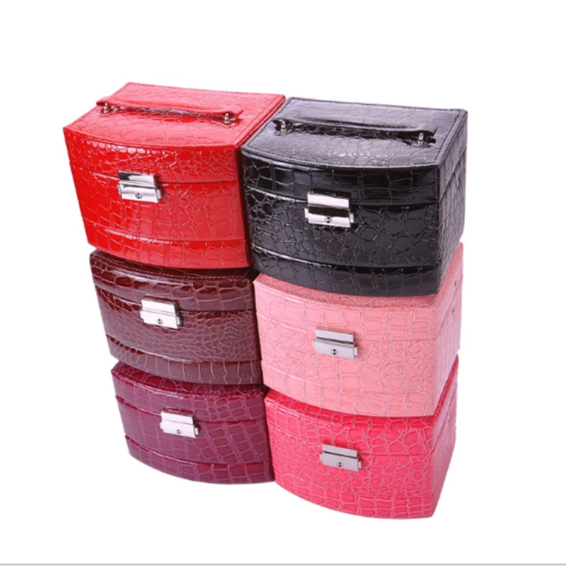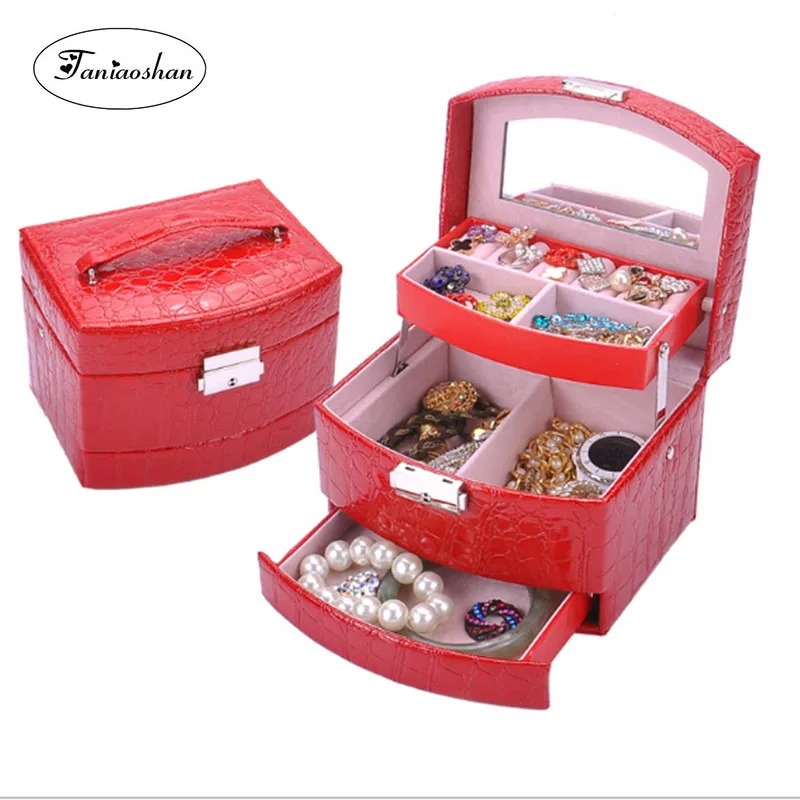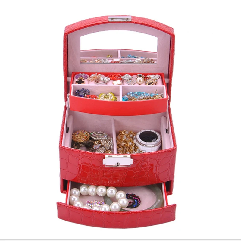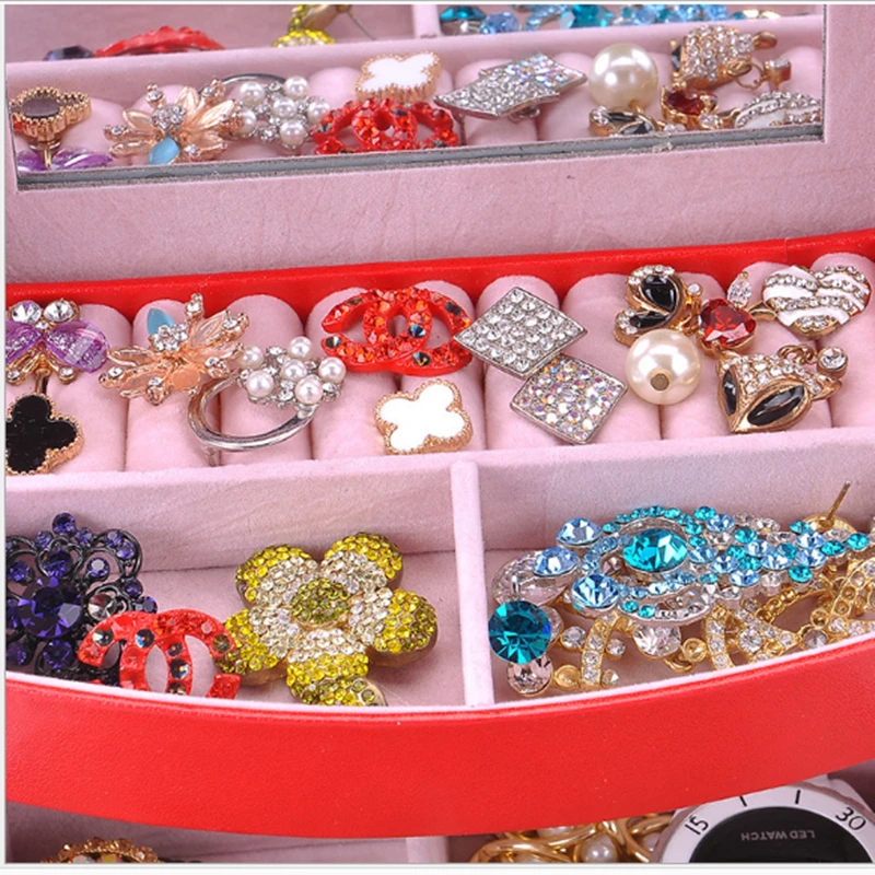 35% OFF!! Fashion three layers of automatic jewelry box European Princess jewelry storage box Leather earrings gift box Birthday gift