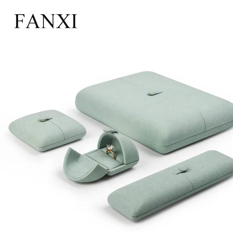 Best Seller Fanxi 2018 New Ice Blue Jewelry Gift Box Microfiber with Button Ring Pendant Bracelet Chain Packaging Box Showcase Organizer