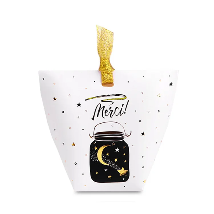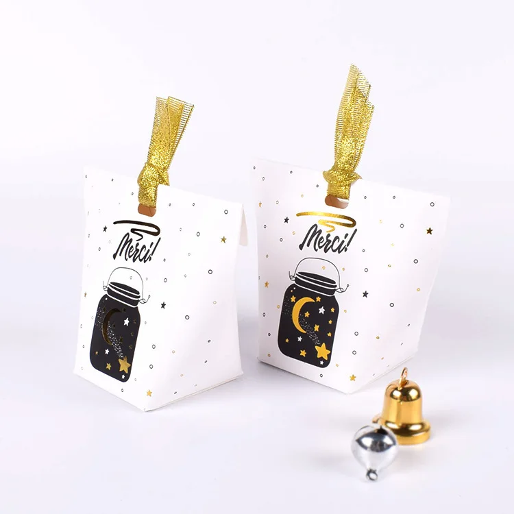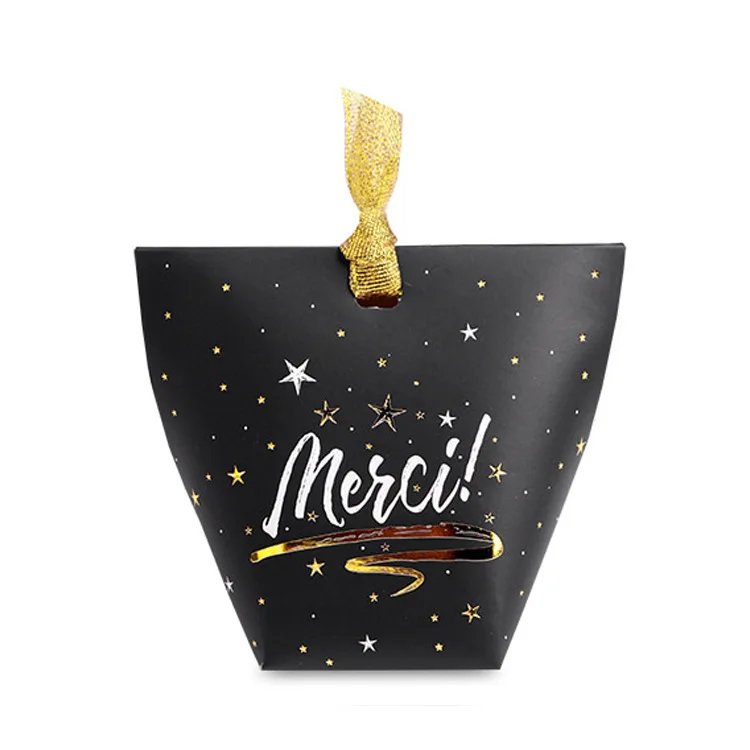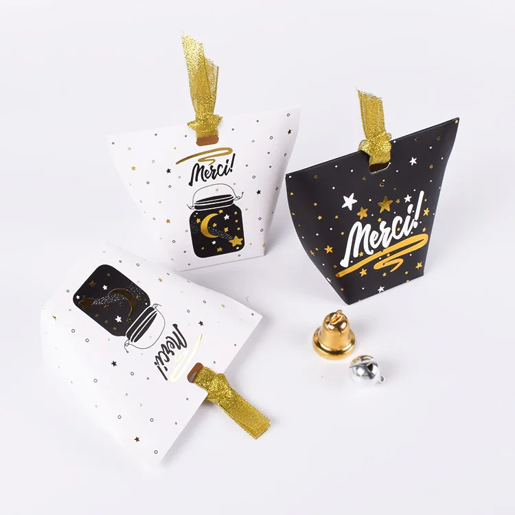 50pcs/lot New Black and White Pillow Box Foil Gold Ribbon Bow Present Carton Pouch Kraft box Gift Boxes Wedding Party Supply