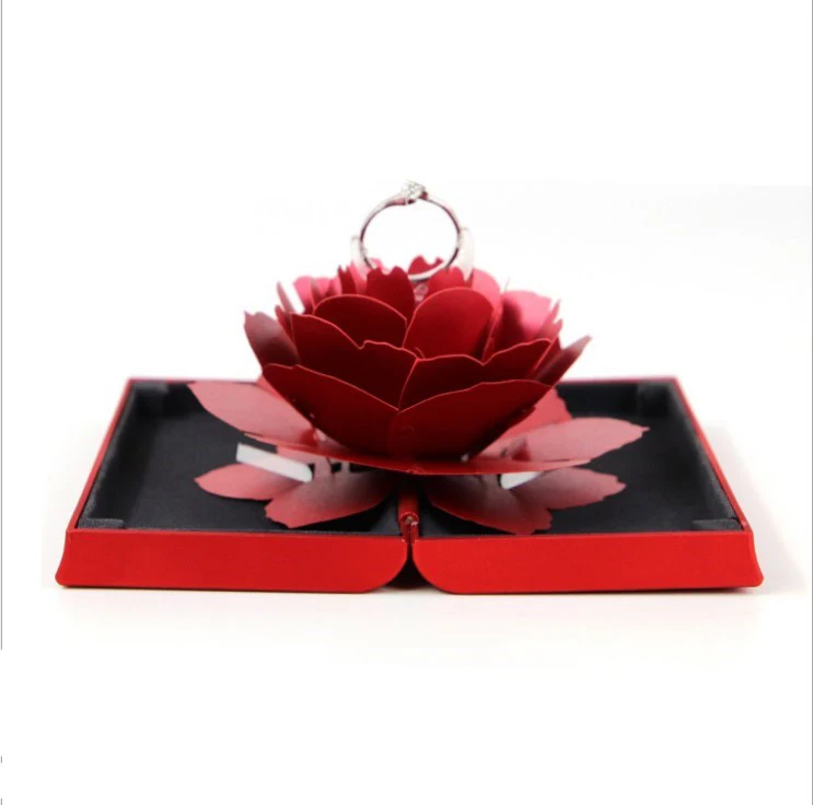 Engagement Propose Ring Jewelry Box Marriage Wedding Ceremony Ring Box with Rose 2019 Fashion Romantic Creative