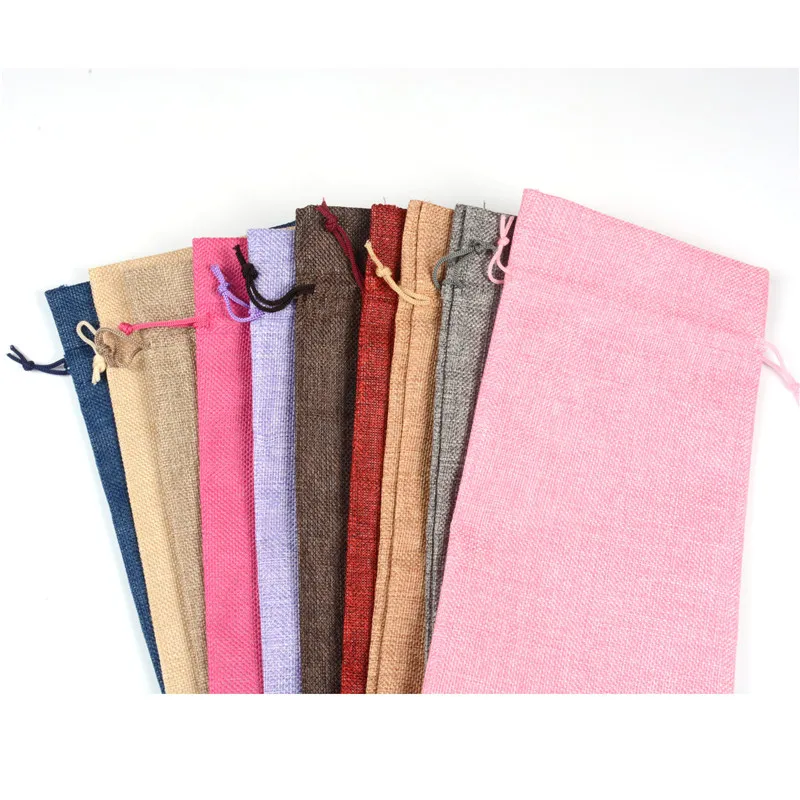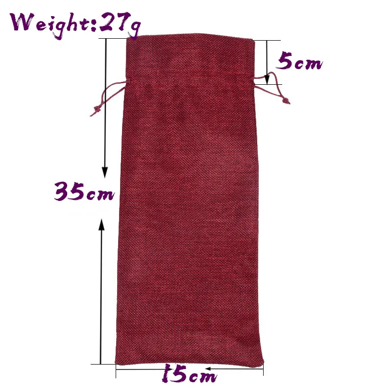 15x35cm Natural Hessian Burlap Drawstring Gifts Bags Jewelry Pouches Rustic Jute Wine Bottle Cover Bag For Wedding Christmas