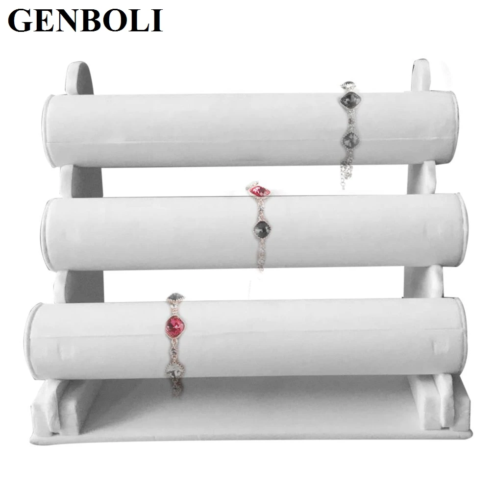 GENBOLI 3-Tier Bracelet Jewelries Display Rack Black Velvet Bangle Watch Organizer jewellery Storage Holder jewelry display A40