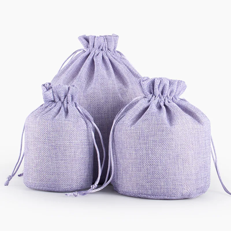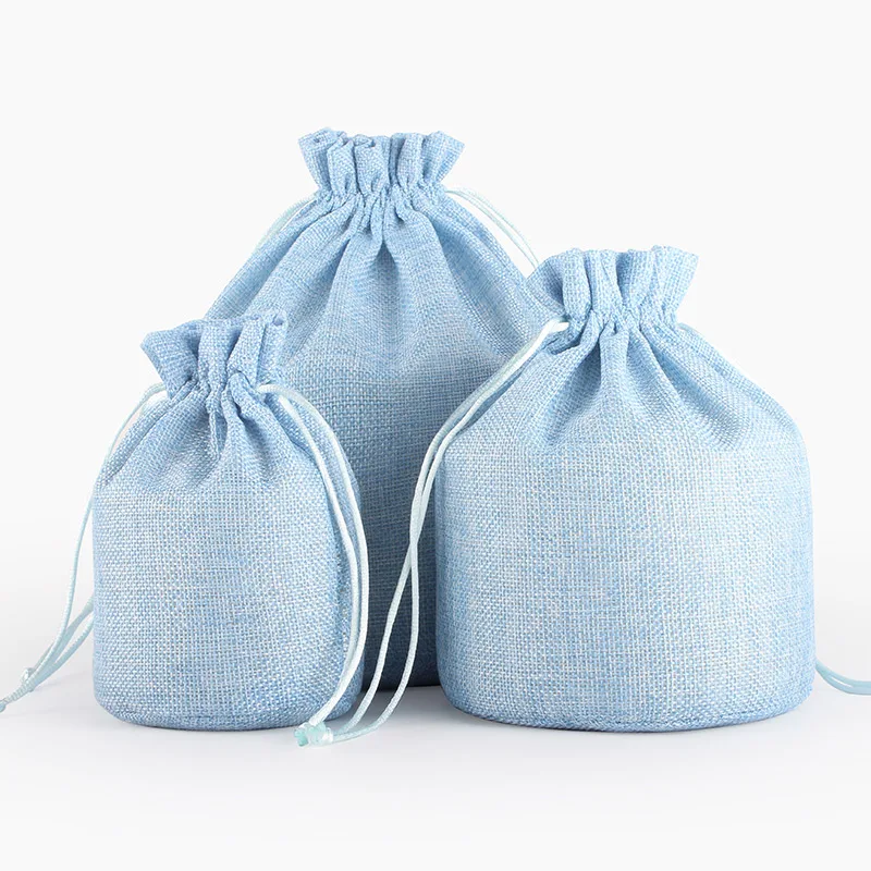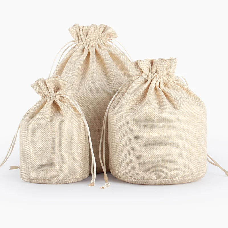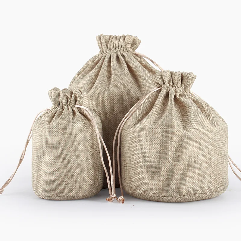 50pcs Linen Drawstring Pouch Jewelry Packaging Bag Jute Pouch Burlap Party Candy Gift Round Bottom Packaging Bag