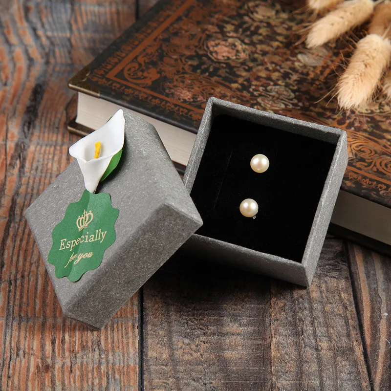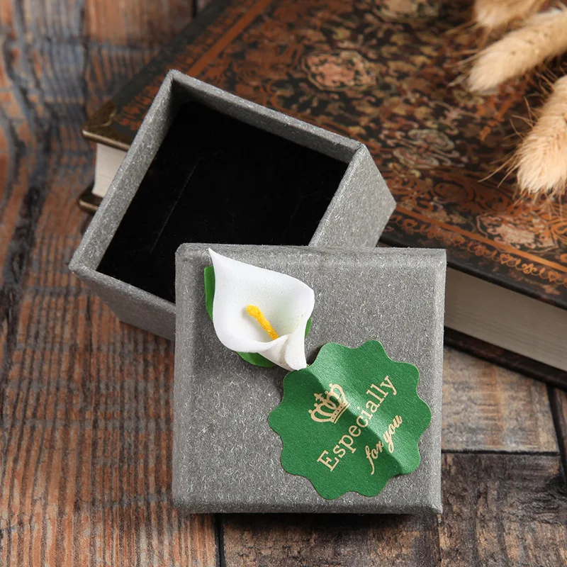 High Quality 5 Pack/Lot 5.5x5.5x3.5 cm Grey Kraft Paper Craft Jewelry Rings Boxes With Lily Flower Earring Ring Gift Box Cases