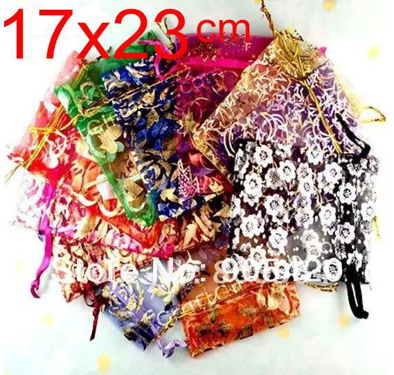 FREE SHIPPING OMH wholesale 50pcs 17x23cm Love flowers Rose heart Christmas Wedding voile gift bag Organza Jewlery packing Gift Pouches BZ08