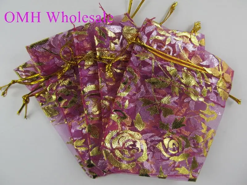 OMH wholesale 50pcs 17x23cm Love flowers Rose heart Christmas Wedding voile gift bag Organza Jewlery packing Gift Pouches BZ08