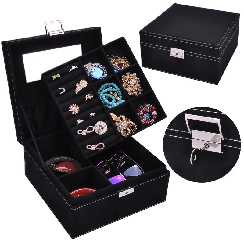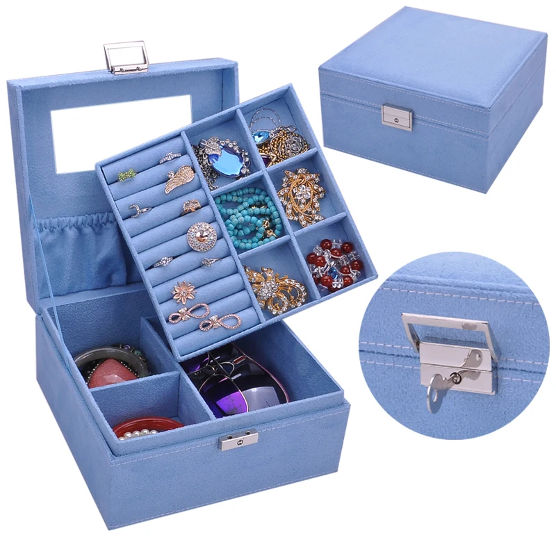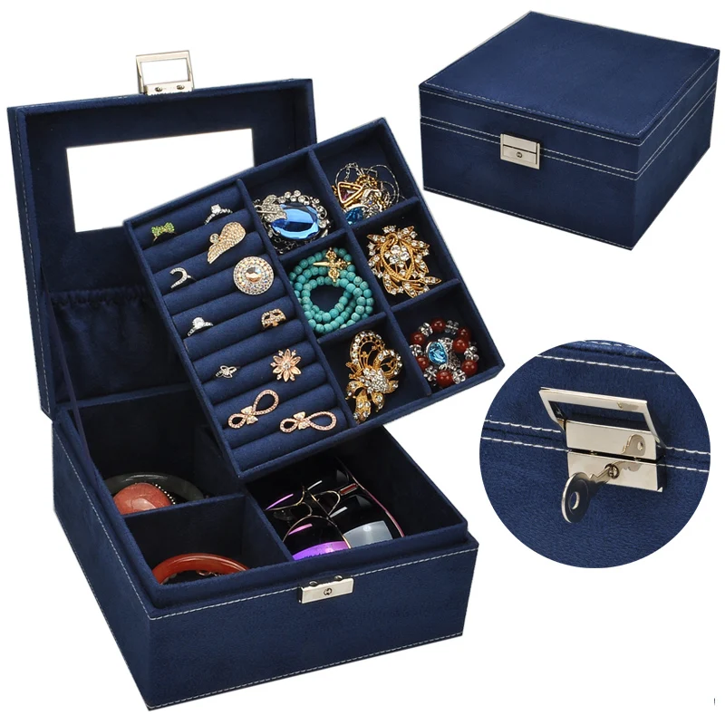 Guanya 2 Layers Velvet Square Watch Jewelry Box Fashion Jewellery Display Storage Packaging Case Organizer Gift Boxes 5 Colors