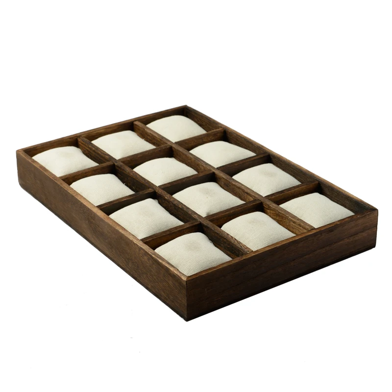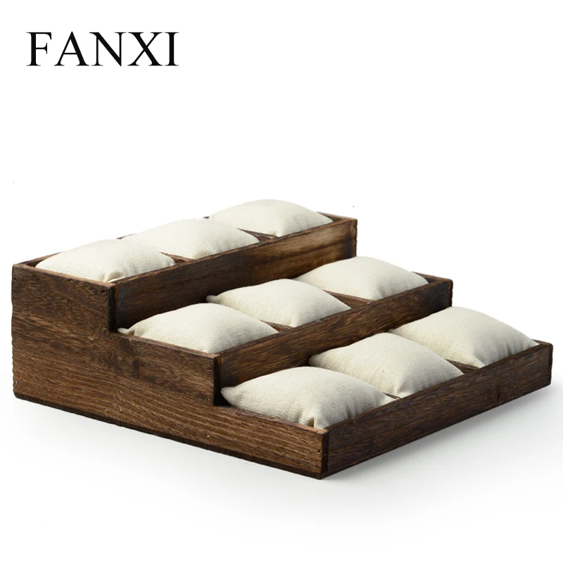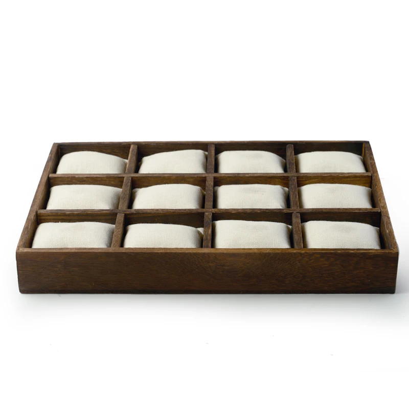 Orilv Vintage Custom Divided Jewelry Display Tray For Bangle Bracelet Watch Holder With Linen Pillow Counter Serving WoodenTray